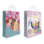 Bolsas de papel Disney con asa retorcida en paquetes surtidos. En papel kraft blanco con asas de color. Si requiere de un paquete surtido debe pedir 24 bolsas y si requiere de una caja completa debe pedir 240 bolsas. Medidas: 24+10×32 cm. (Ancho + Grosor x Alto).